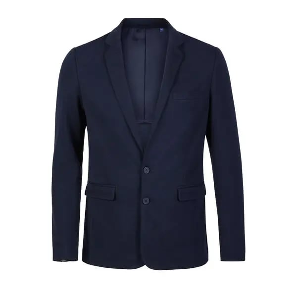 Le blazer Marcel Men, en maille piquée, est conçu pour allier élégance et confort. Composé de 67% polyester et 33% coton, il offre une durabilité optimale tout en restant agréable à porter grâce à son grammage de 210 g/m². Ce modèle présente un col tailleur classique, se ferme avec deux boutons, et dispose de deux poches à rabat ainsi qu’une poche poitrine passepoilée pour un look chic et fonctionnel. La semi-doublure intérieure assure une finition soignée, tandis que la fente au dos permet une grande liberté de mouvement. Idéal pour un usage professionnel, ce blazer est disponible en plusieurs tailles, du 46 au 62, pour s’adapter à toutes les silhouettes.