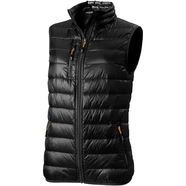 Le bodywarmer Fairview pour femme est idéal pour combiner style et confort tout en affichant votre marque. Conçu en tissu 100% nylon avec un revêtement imperméable ciré, il est garni de 90% duvet et 10% plume pour une isolation thermique efficace et légère (115 g/m²). Sa coupe ajustée et effilée met en valeur la silhouette tout en assurant une grande liberté de mouvement. Pratique, il est doté de poches zippées pour les mains, d’une poche poitrine, ainsi que d’un zip central avec tirette easy grip. Facilement compressible, il est parfait pour une personnalisation par broderie ou transfert, idéal pour véhiculer l’image de votre entreprise avec élégance.