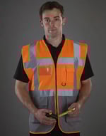 La veste de sécurité Makouri est conçue pour assurer une visibilité maximale tout en mettant en avant votre marque. Confectionnée en 100% polyester léger (125 g/m²), elle est dotée de bandes réfléchissantes horizontales et verticales à l’avant et au dos, garantissant une haute visibilité, de jour comme de nuit. Idéale pour les environnements professionnels ou pour les événements extérieurs, elle est équipée de multiples poches pratiques : une poche téléphone avec fermeture auto-agrippante, une fenêtre d’identification à l’avant et deux poches latérales sécurisées. Parfaitement adaptée pour la personnalisation par sérigraphie ou transfert, ce gilet est un excellent choix pour assurer la sécurité de vos collaborateurs tout en promouvant votre entreprise.